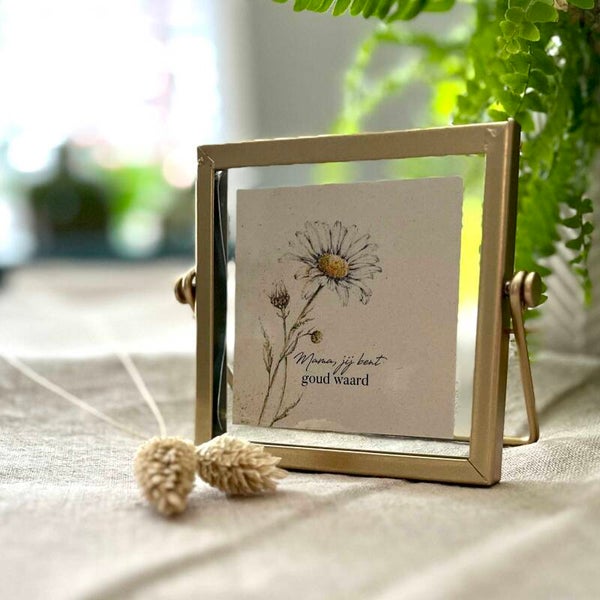 - Metalen goudkleurig lijstje met mini-kaartje;