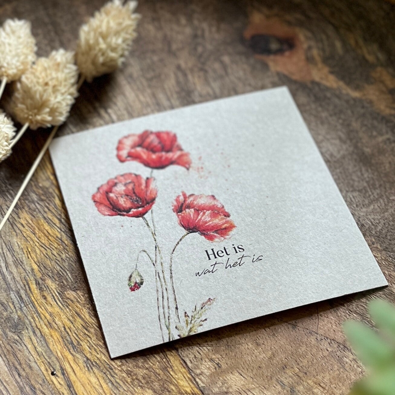 De kaarten laat ik drukken op super duurzaam papier. Gemaakt van bladeren en stengels die overblijven na de oogst. Dat is nóg mileuvriendelijker dan gerecycled papier! Geproduceerd met 100% groene energie. Daar word ik nou blij van!