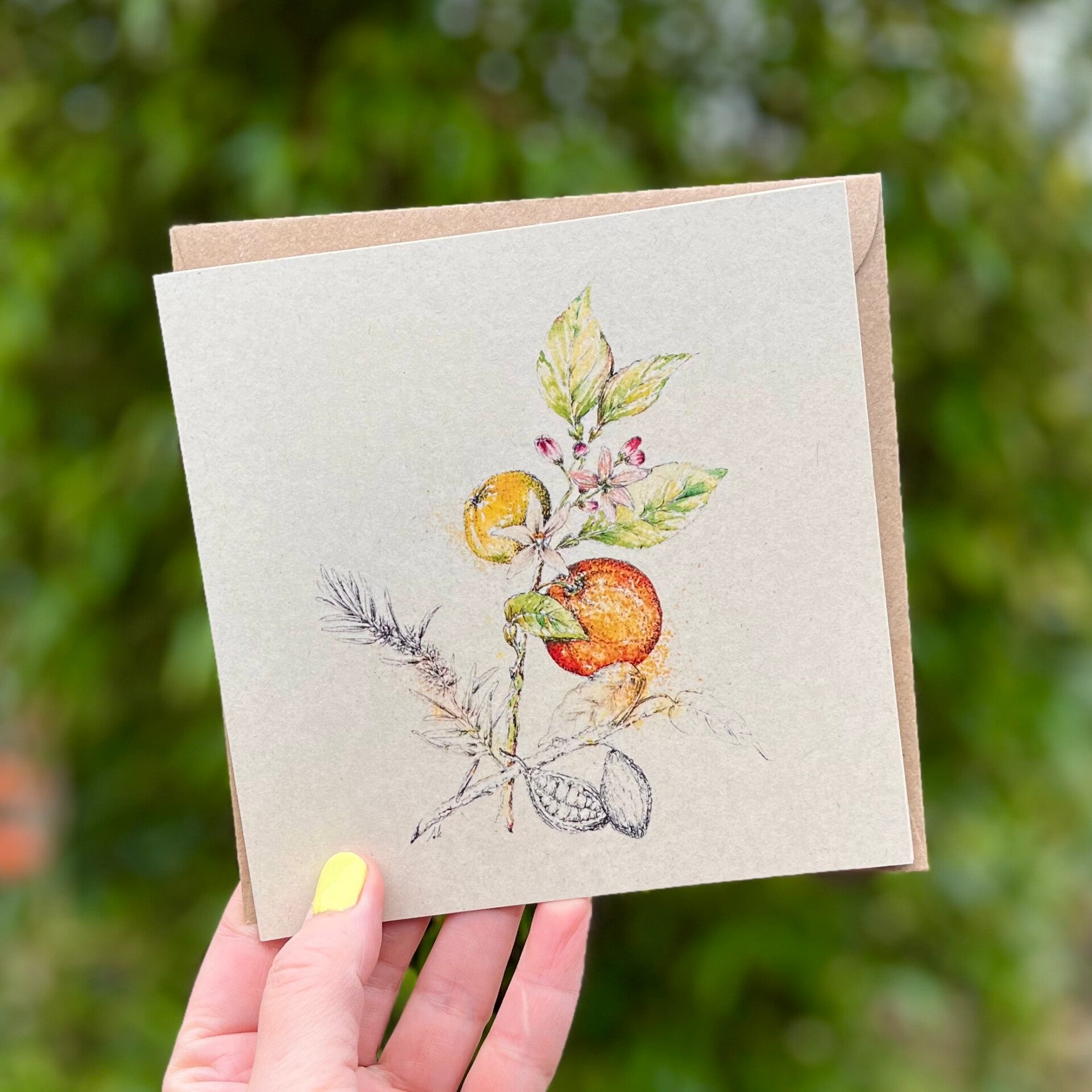 Het tekenen, digitaliseren en ontwerpen heb ik allemaal in eigen beheer. De kaarten laat ik drukken op super duurzaam papier. Gemaakt van bladeren en stengels die overblijven na de oogst. Dat is nóg milieuvriendelijker dan gerecycled papier! Geproduceerd met 100% groene energie. Daar word ik nou blij van!