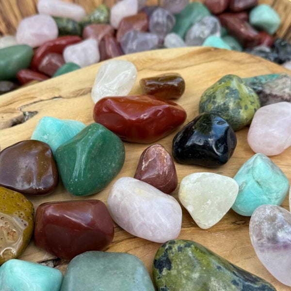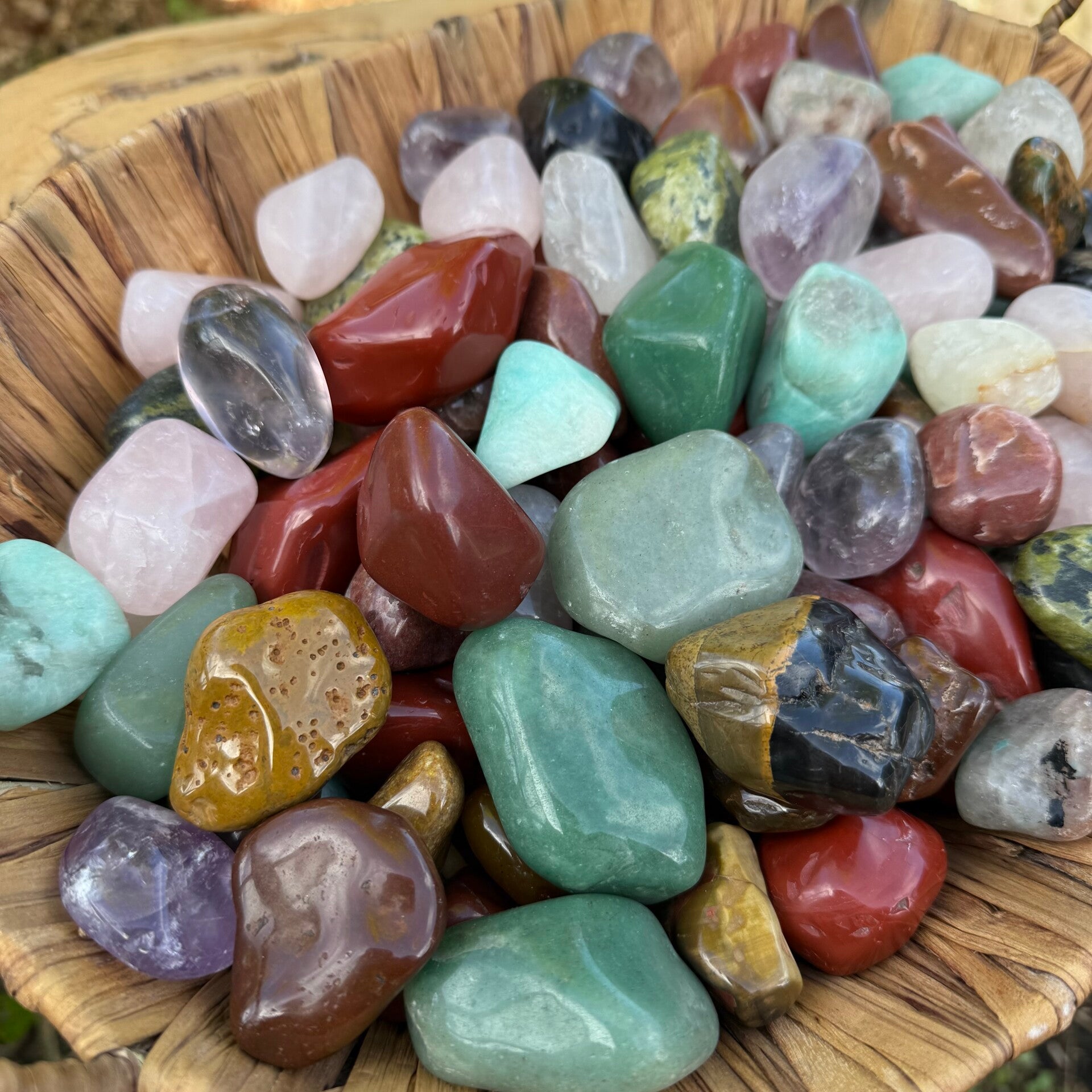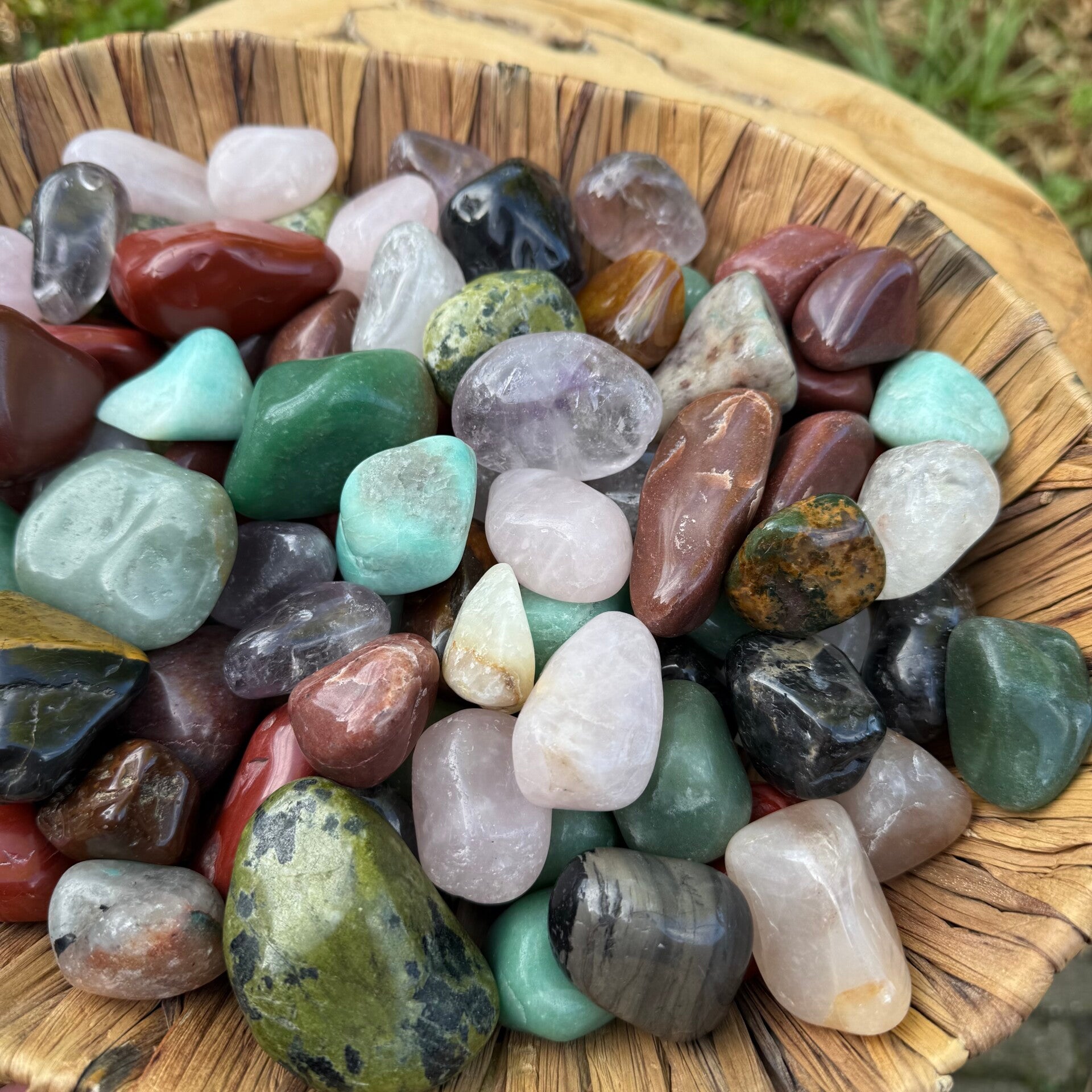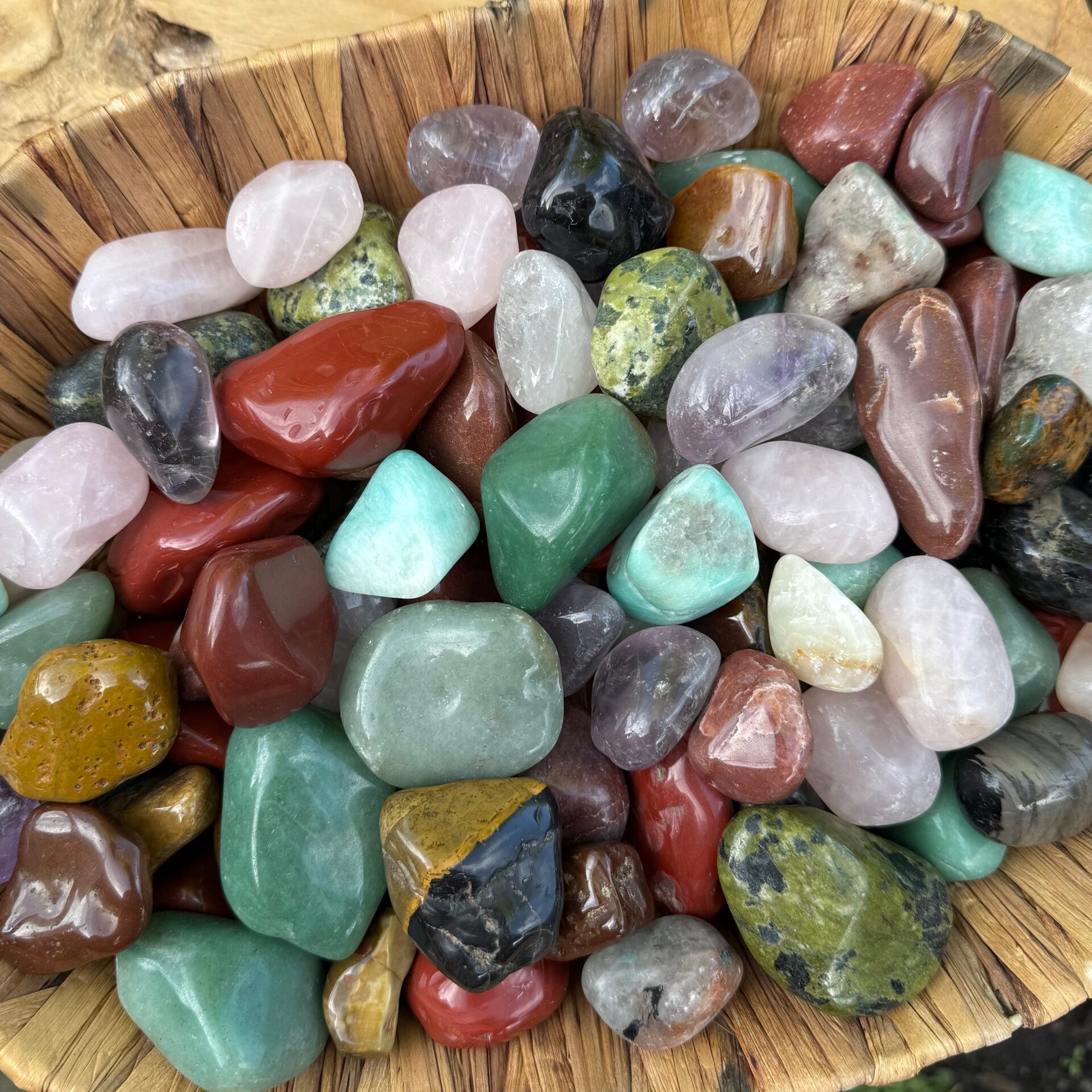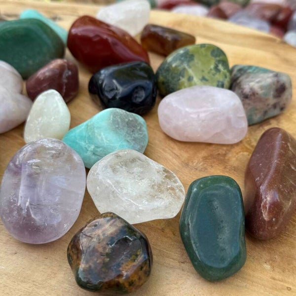 Allerlei verschillende stenen. O.a. rode jaspis, aventurijn, nefriet jade, amethist, rozenkwarts... Ik ruim op en ze mogen naar een andere plek waar ze hun werk mogen doen ☺️