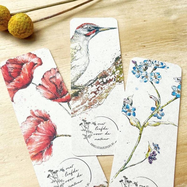 Mijn boekenleggers laat ik drukken op duurzaam papier. Gemaakt van bladeren en stengels die overblijven na deoogst. Geproduceerd met 100% groene energie. Daar word ik nou blij van!