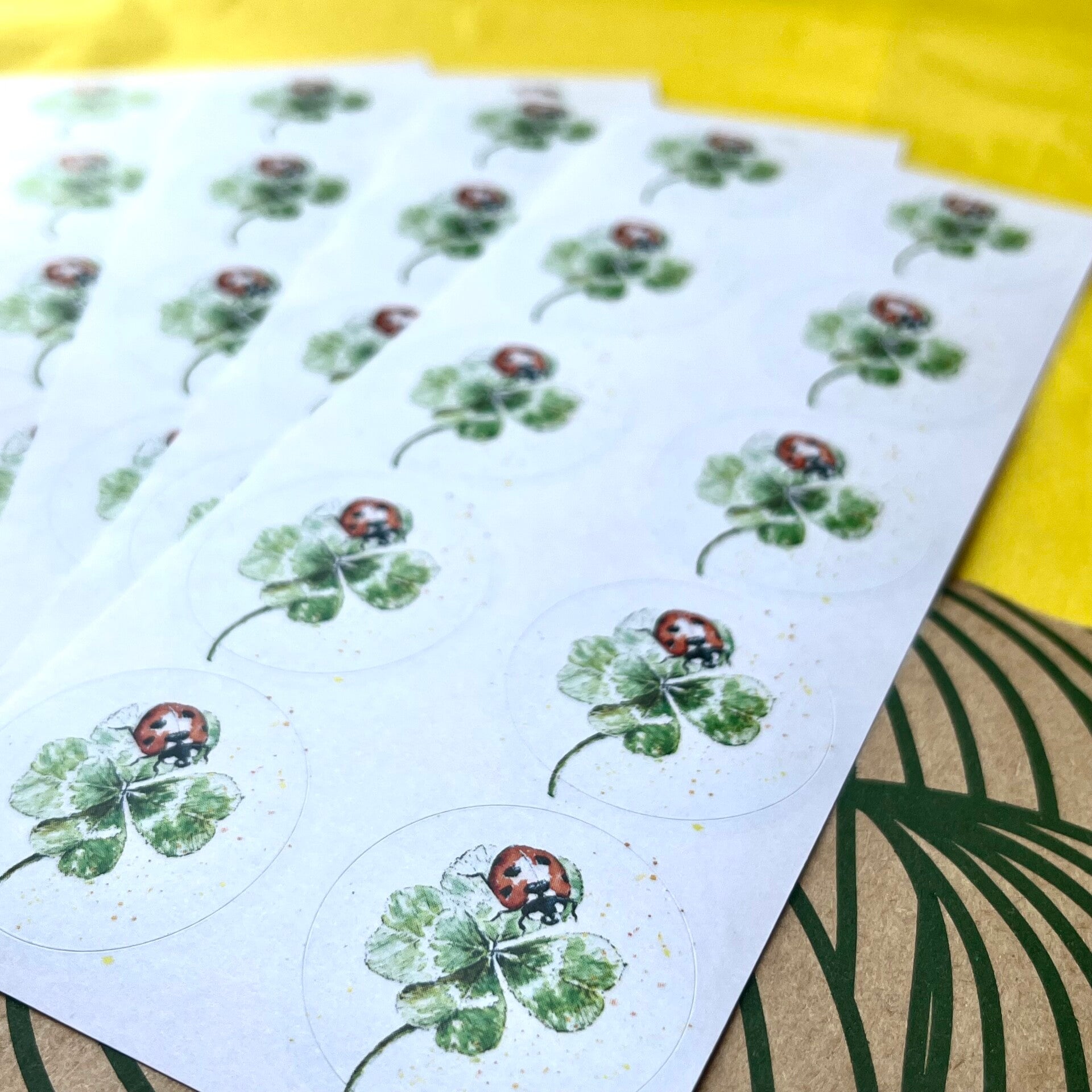10 sluitstickers ‘klavertje vier met lieveheersbeestje’